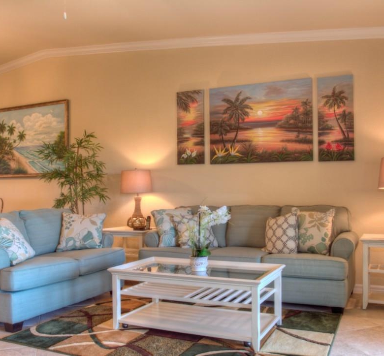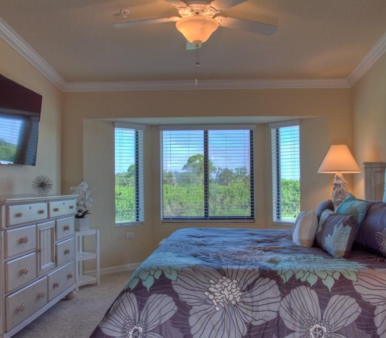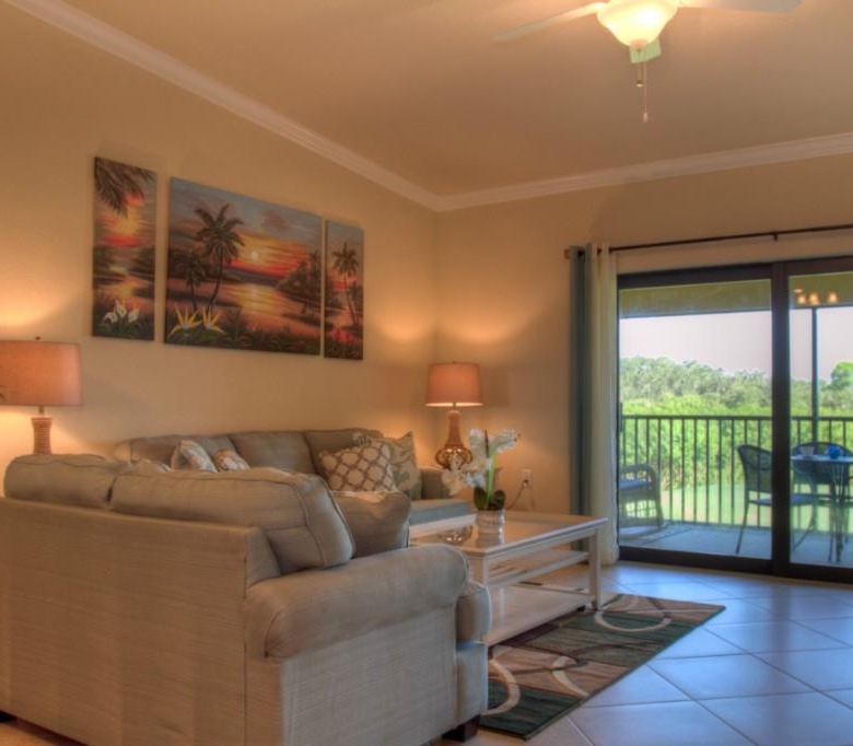 STILL AVAILABLE FOR SEASON 2121! Golfers paradise! Be the first to enjoy the Florida lifestyle in this brand new, two bed/two bath plus den condo in the exclusive gated golfing community of Riverstrand. This condo sits right on the golf course and also has a view of the water. Relax in style and watch TV on the 60″ flat screen from the plush comfort of your king sized bed! The second bedroom also has a large flat screen TV and plush new bedding. The den has a full size leather sleeper sofa and can be used as a third bedroom. The living/dining area is a spacious open plan that allows for entertaining, comfort and privacy. The Kitchen features granite countertops and stainless appliances. Everything new! With two screened lanais, there is also room for entertaining outside and taking in the golfing action out on the course. Off street driveway parking. This unit also offers a membership transfer that will allow you to golf on this private course and also use all of the amenities this desirable community has to offer. have some fun in the warm Florida sun this season! Garage not available. Owner use only.
