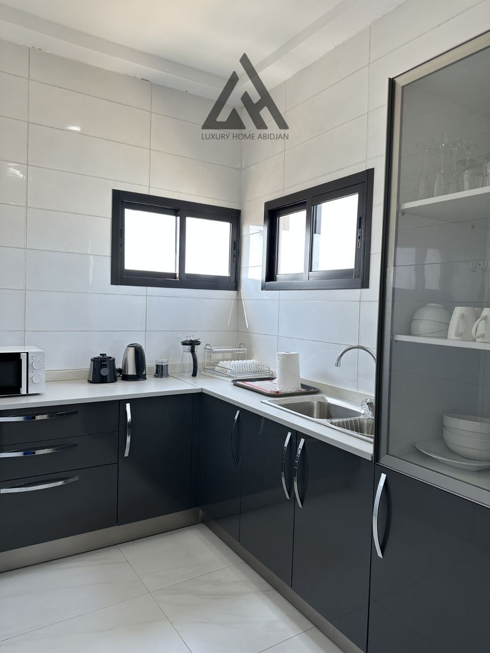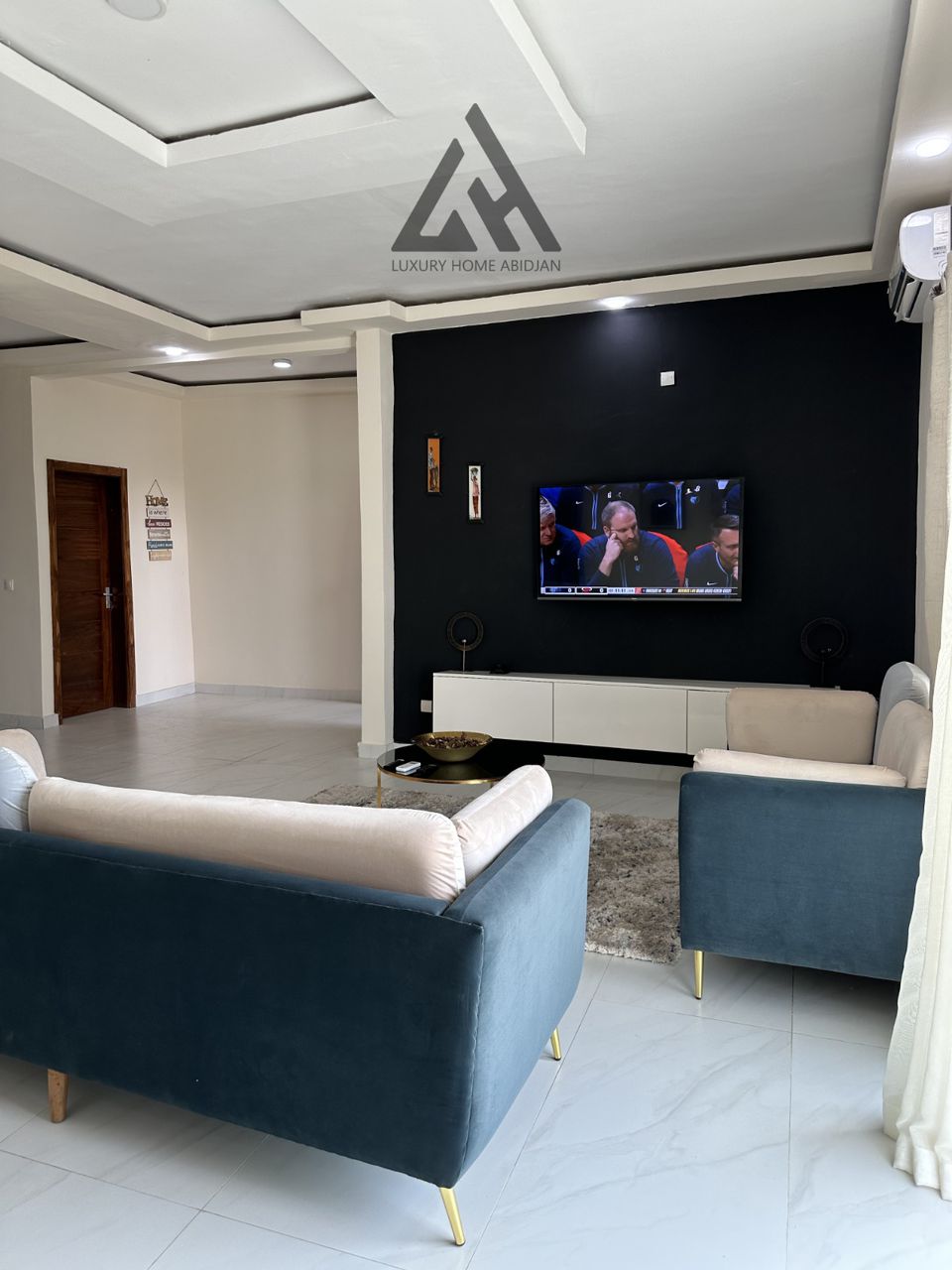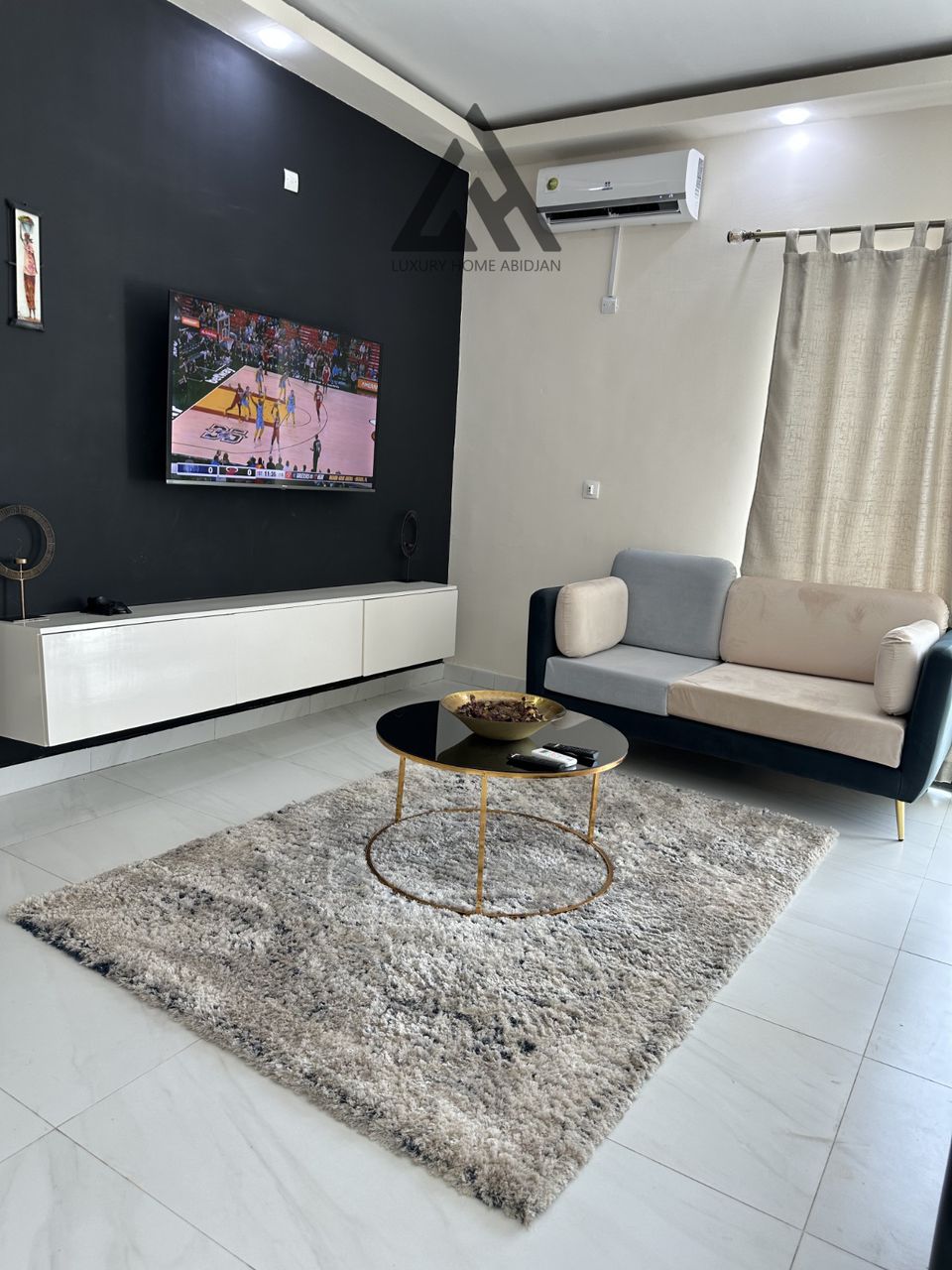 Situé à Angré – Cocody jouxtant nouveau CHU, ADAM est un appartement neuf T3 lumineux avec des volumes généreux entièrement meublé et équipé.