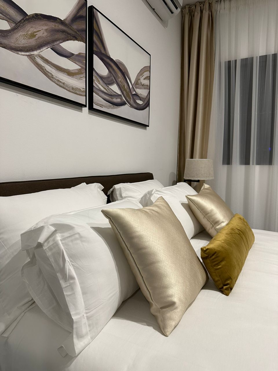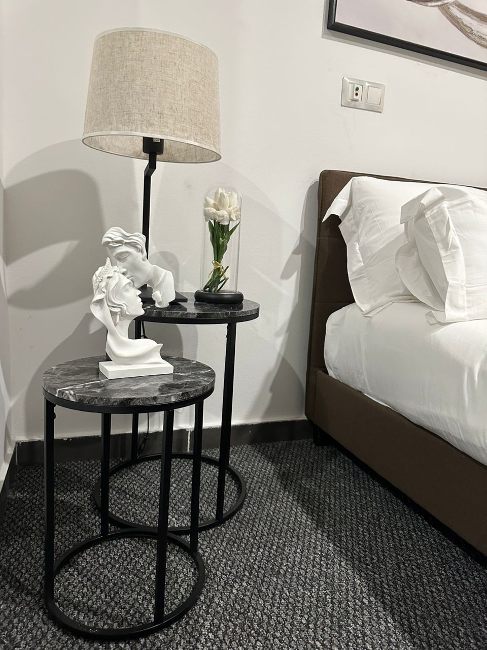Un salon agréable à la décoration soignée où vous aurez plaisir à recevoir vos invités, le bonheur de retrouver votre élégante chambre, propice à la détente après de longues journées dans la ville d’Abidjan.