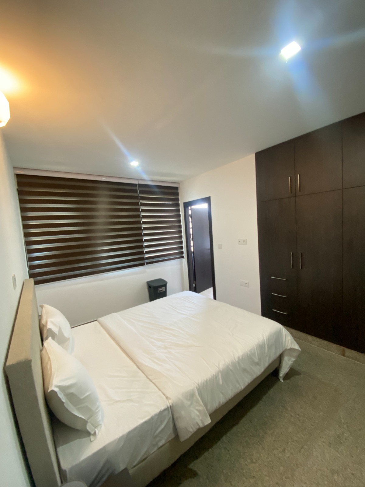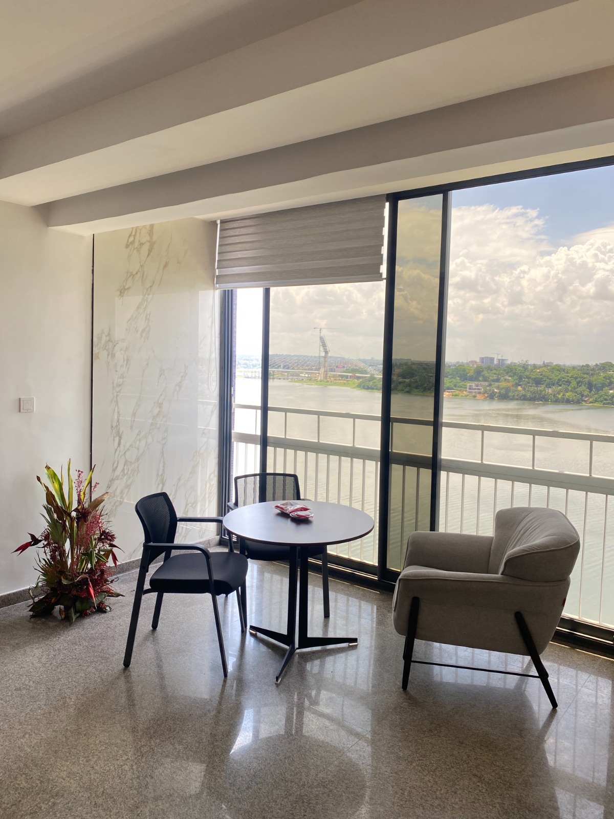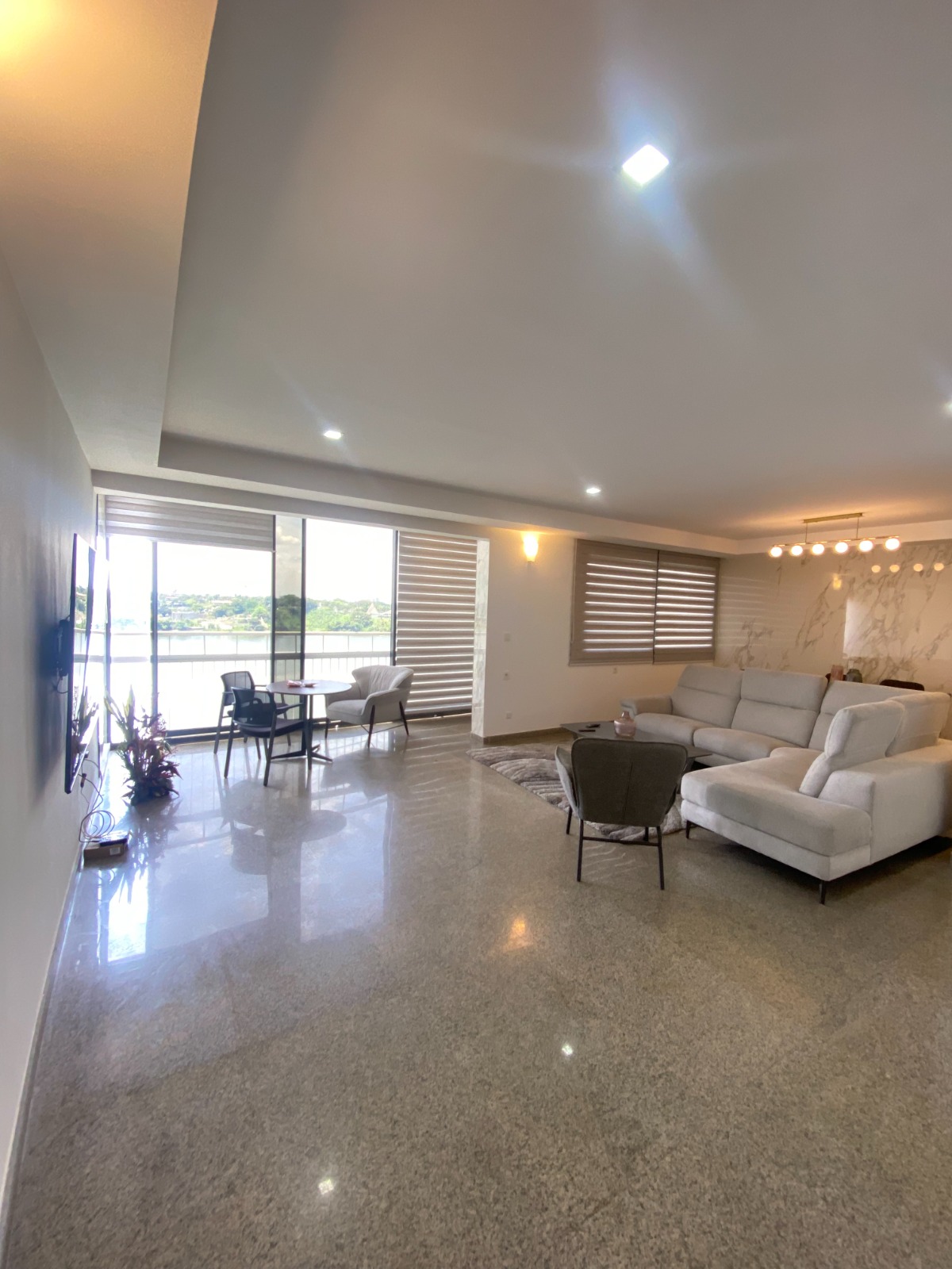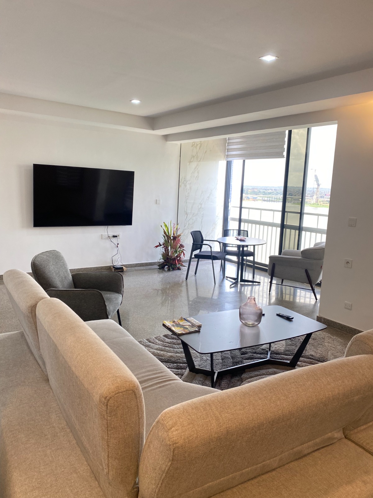 Dès que vous franchissez le seuil de sa belle porte, sur votre droite, une belle cuisine américaine totalement équipée et aménagée, avant de vous retrouver dans son spacieux double séjour décoré Il porte son nom en raison de sa magnifique vue sur la lagune Ébrié