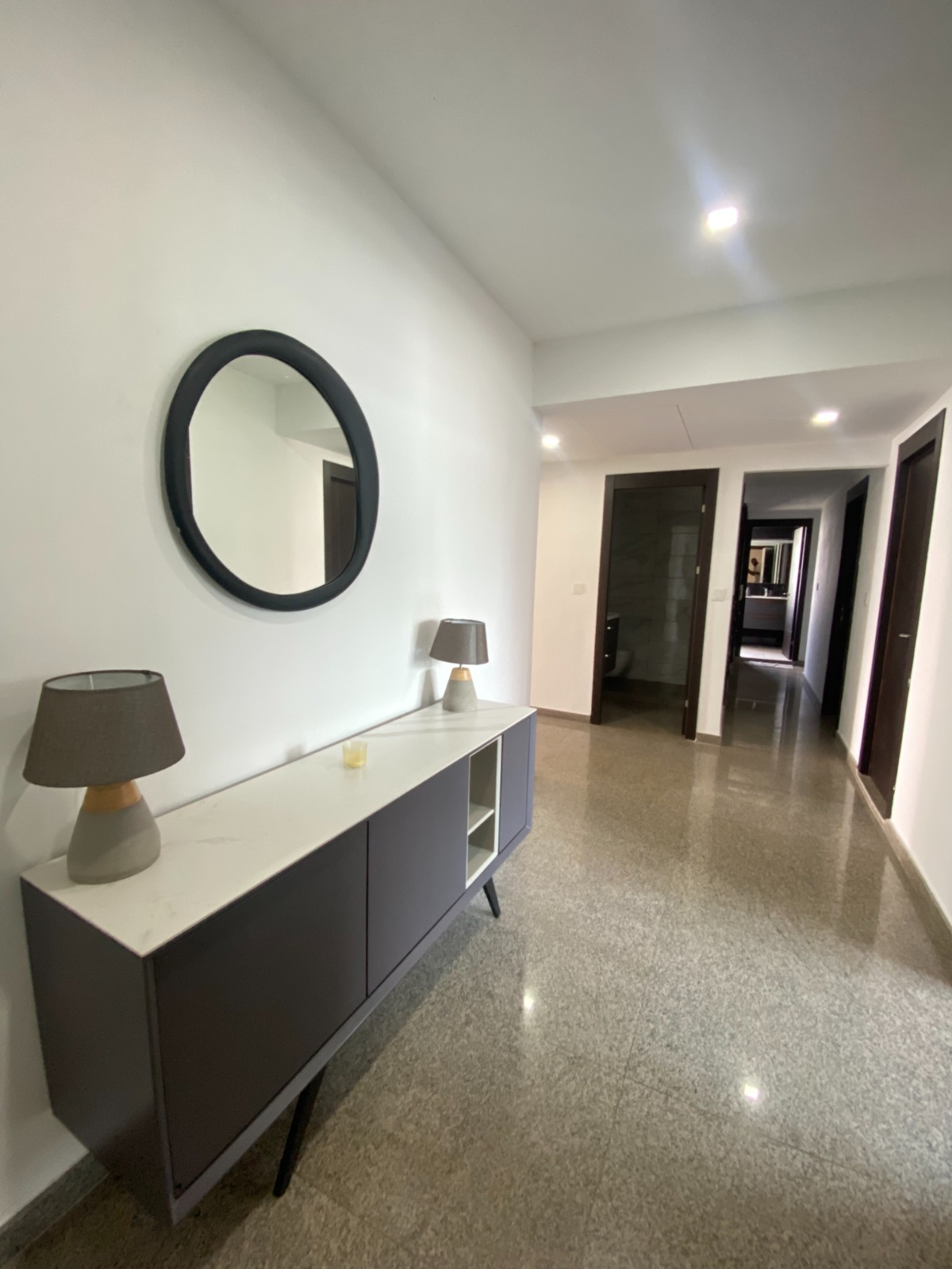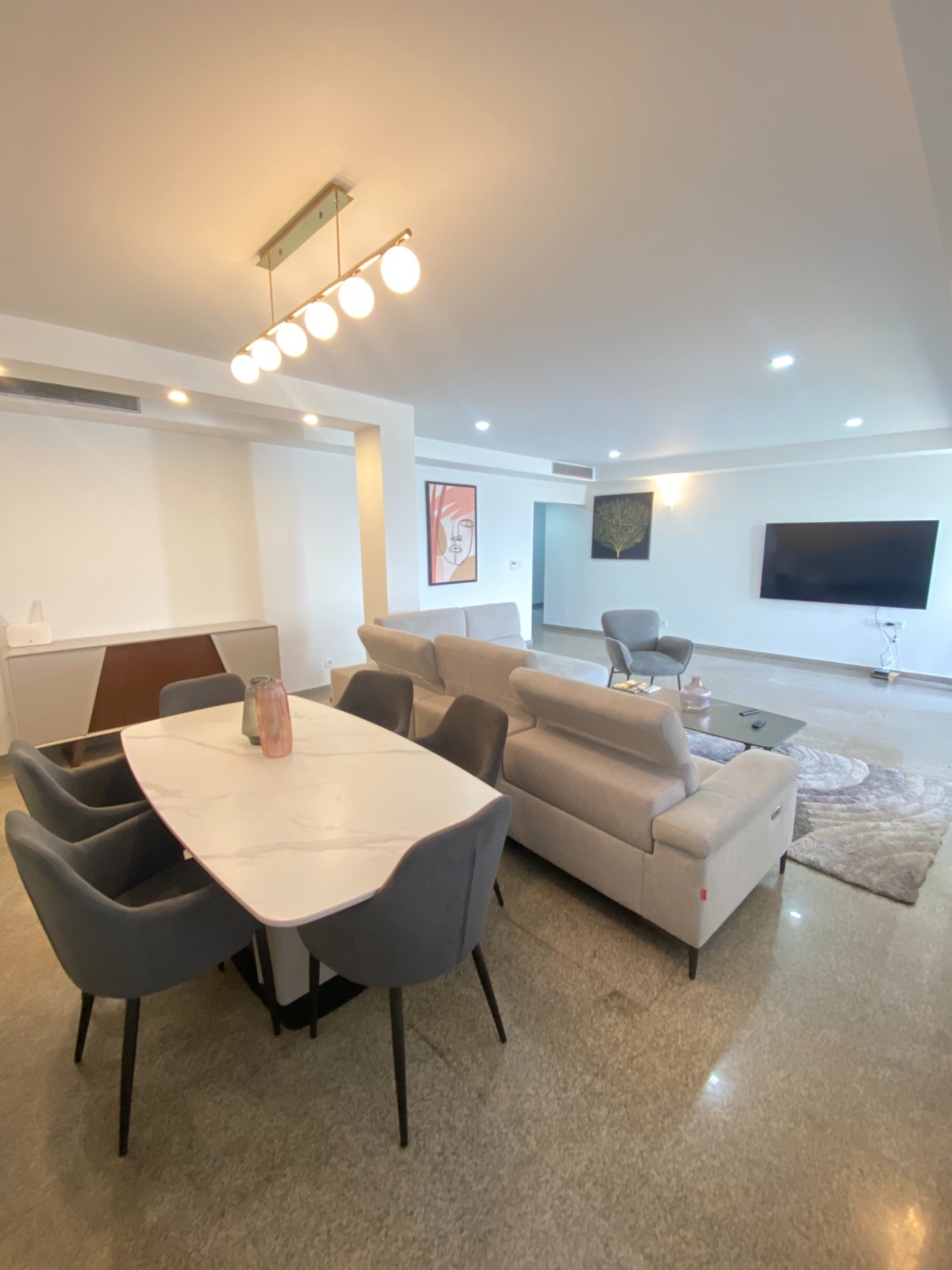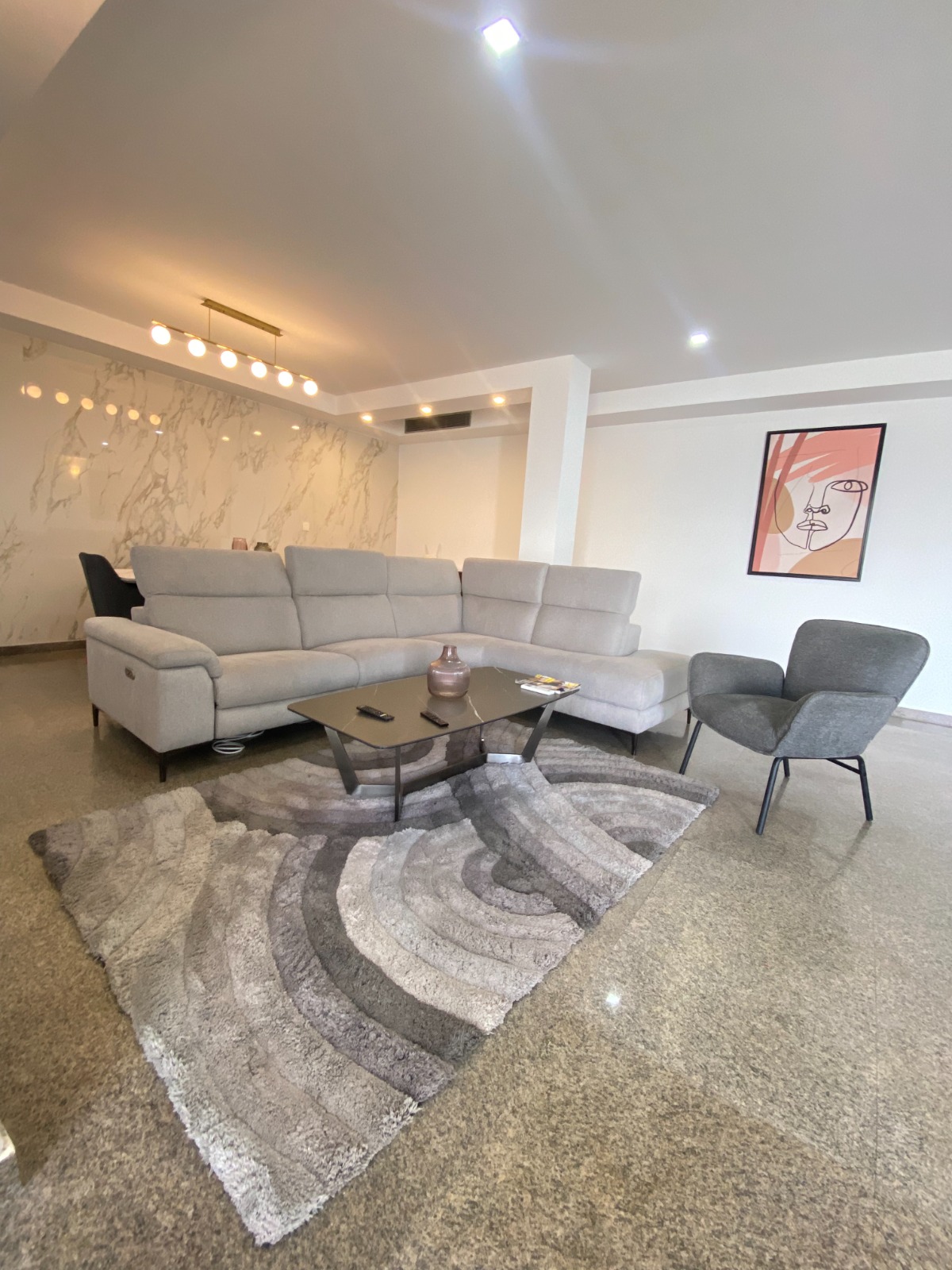 Dès que vous franchissez le seuil de sa belle porte, sur votre droite, une belle cuisine américaine totalement équipée et aménagée, avant de vous retrouver dans son spacieux double séjour décoré Il porte son nom en raison de sa magnifique vue sur la lagune Ébrié