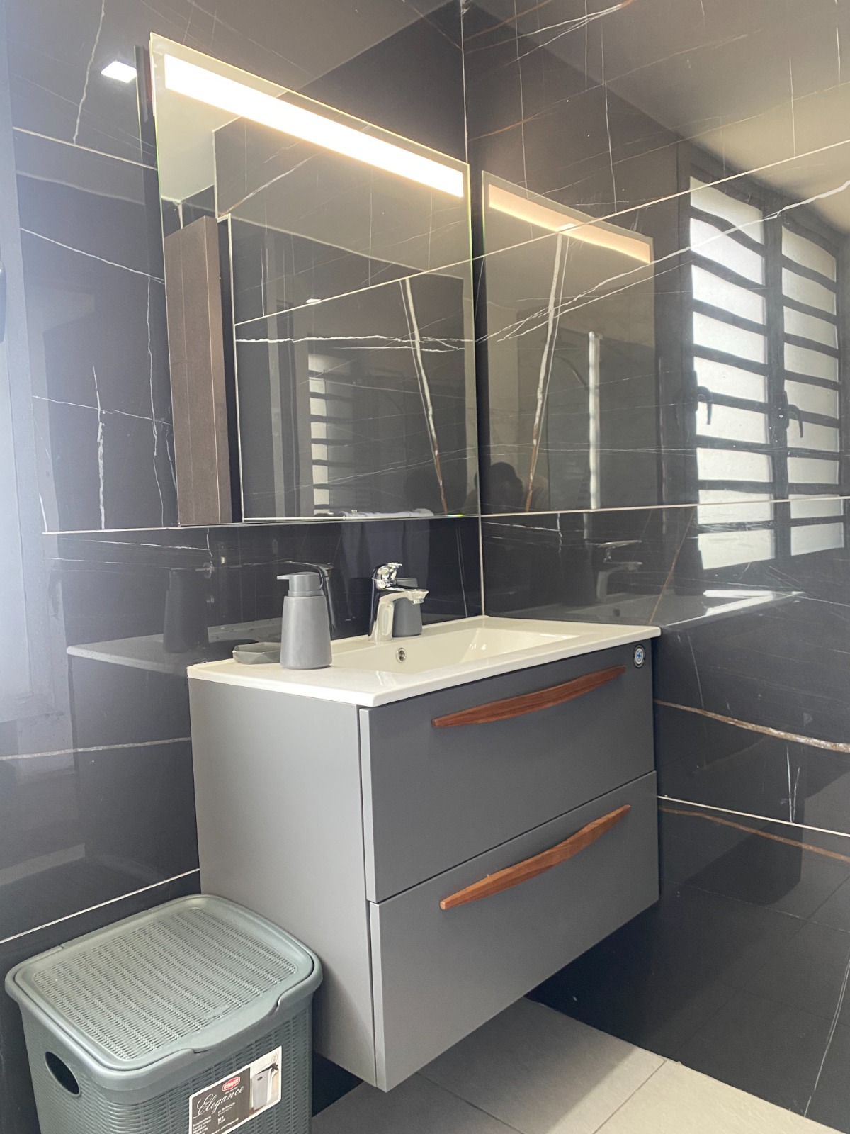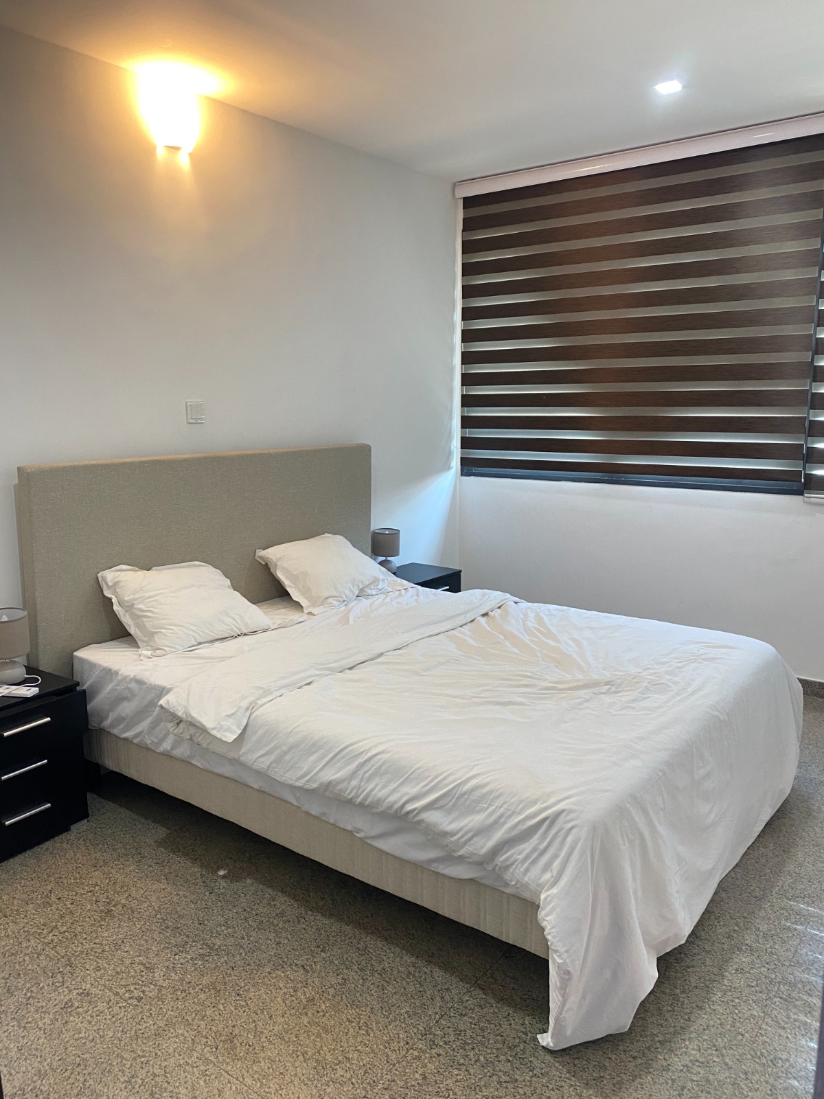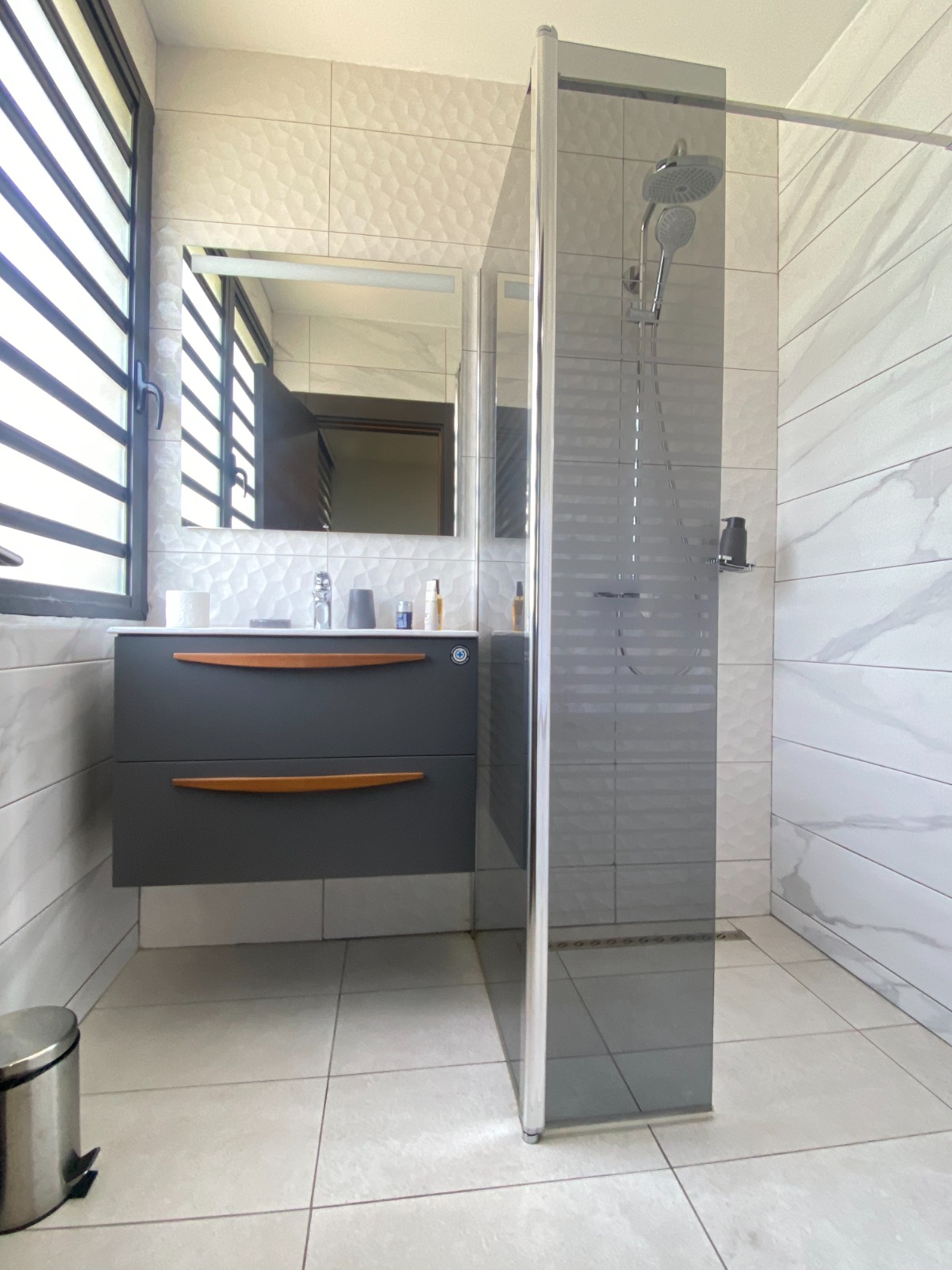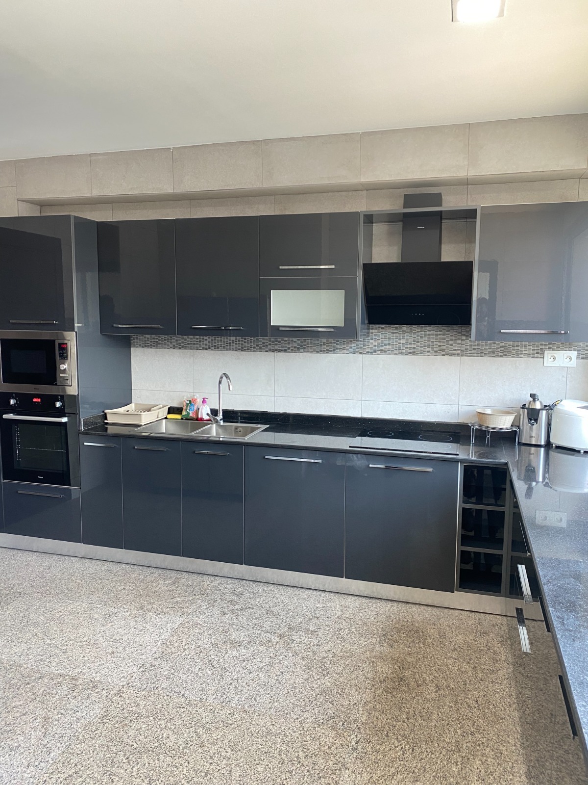 Dès que vous franchissez le seuil de sa belle porte, sur votre droite, une belle cuisine américaine totalement équipée et aménagée, avant de vous retrouver dans son spacieux double séjour décoré Il porte son nom en raison de sa magnifique vue sur la lagune Ébrié