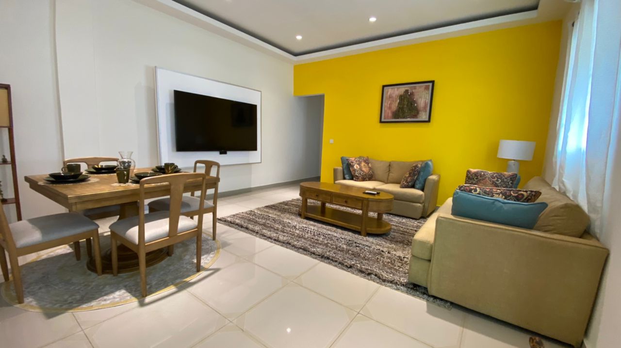 L’appartement Alma comprend 01 chambre équipée en TV + Split, 01 salon et salle à manger + Split, 01 cuisine entièrement équipée, 01 toilette visiteurs et 01 place de parking.