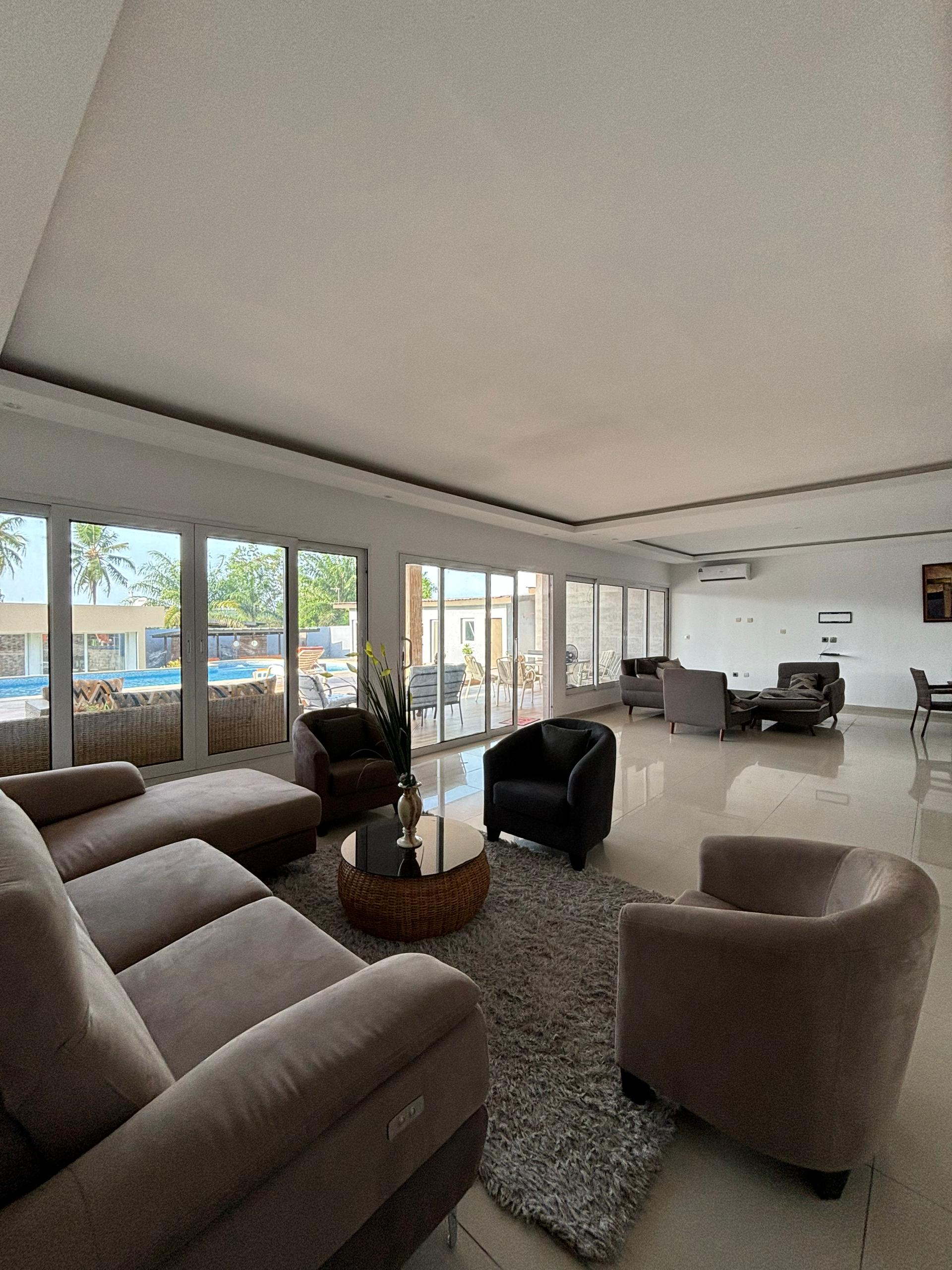 Comportant une belle Villa duplex aérée, lumineuse avec des volumes généreux bâtie sur 700m² et quelques mètres carrés, édifié sur un terrain de 1200m2 avec une possibilité de l’étendre pour atteindre 2000m² et ce en bordure de la lagune Ebrié.